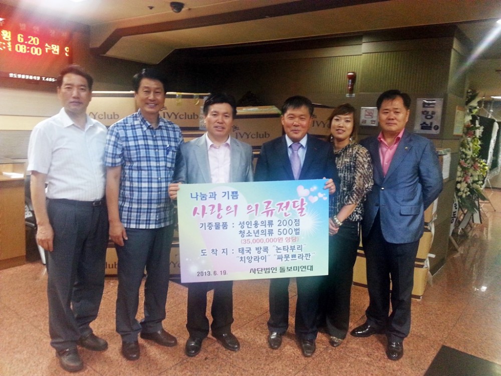태국 방콕의 "논타부리", "치앙라이", "싸뭇쁘라깐"지역의 청소년들을 위한 동,하복(체육복)500여벌과 성인일반의류 200여점을 전달하였습니다.
