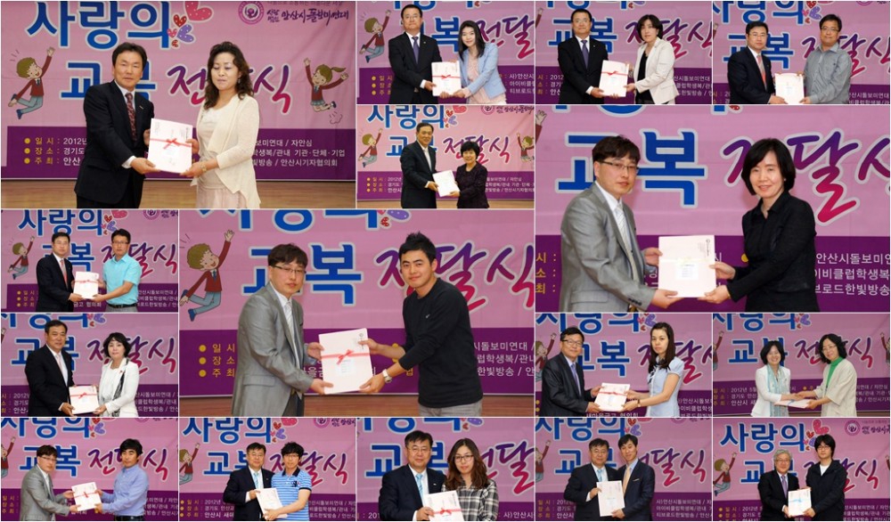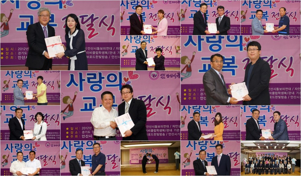 2012 2012, 돌보미연대 사랑의 교(하)복 나눔 전달식 페이지 정보 작성자운영자 댓글 0건 조회Hit 1,030회 작성일Date 20-01-28 17:14 본문 2012.5.7 돌보미연대 교(하)복나눔 SNS공유 목록 이전글2012, 안산시 학교폭력 예방대책회의 20.01.28 다음글2012, 새마을문고. 독서감상화 그리기대회 20.01.28 댓글목록 댓글목록 등록된 댓글이 없습니다.