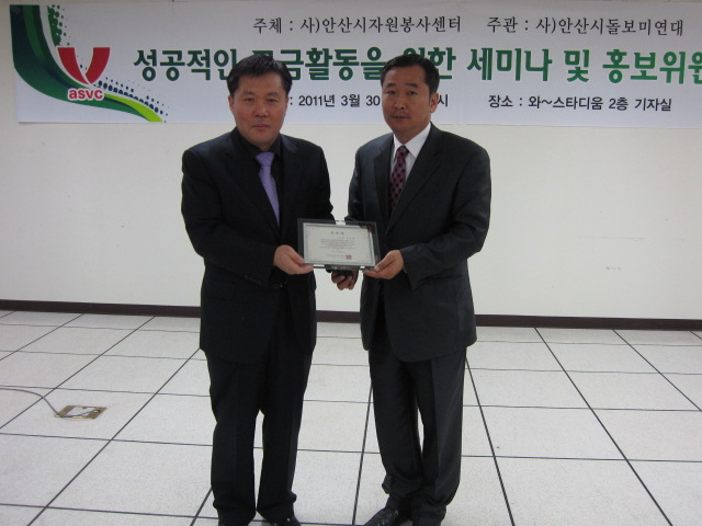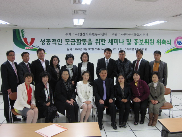 2011년3월30일 수요일 오후 14시에 안산 와스타디움 2층 기자실에서 성공적인 모금활동을 위한 세미나와 홍보대사 위촉식행사를 열었다.