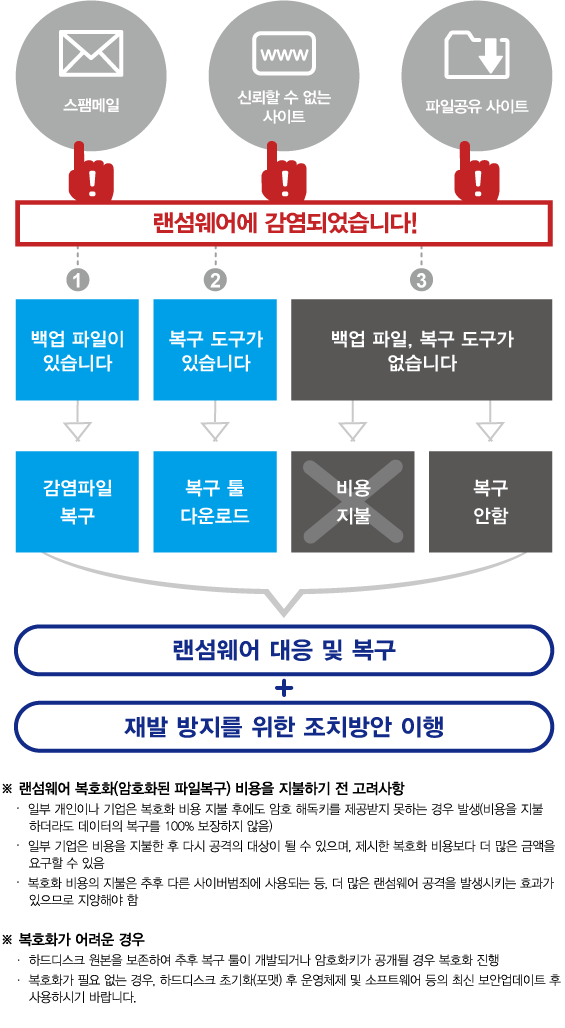 따라서 조금이라도 중요한 자료의 악성엄호화를 막으려면 일단 PC를 무조건 끄는 것이 중요합니다.