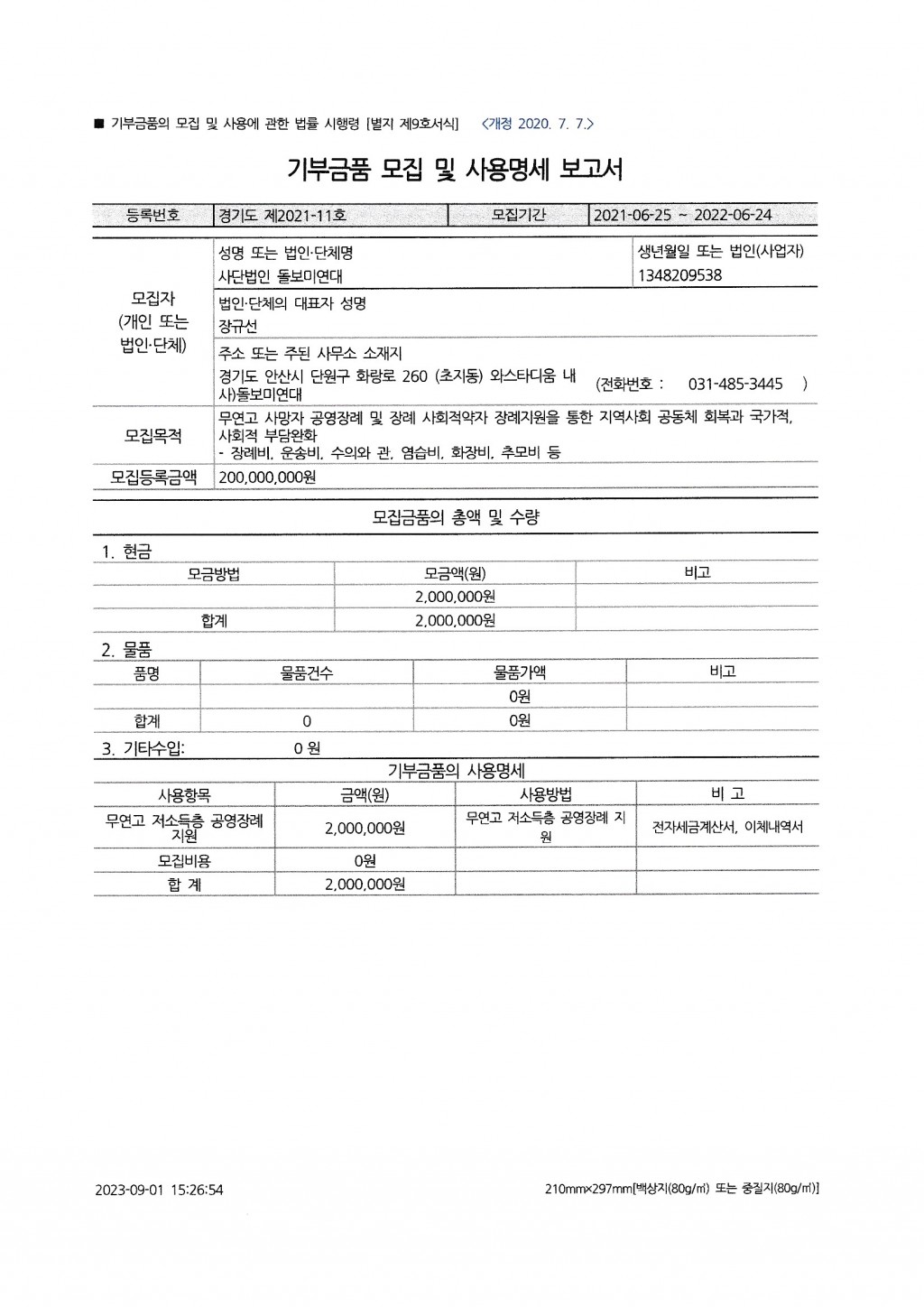 목록 기부금품 모짖 및 사용명세 보고서 작성자 운영자 작성일 23-09-01 16:31 | 조회 1,662 | 댓글 0 ()[] 본문 2021,06.25-2022.06.24일까지 기부금품 모집 및 사용명세 보고서 이전글다음글 SNS공유 목록