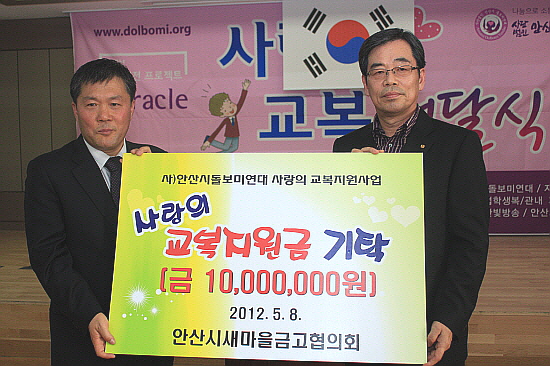 기부하시는 분 안산시새마을금고협의회, 1천만원 교복지원 기탁