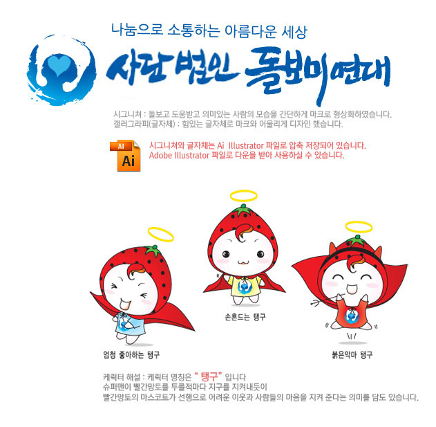 돌보미연대 로고와 캐릭터 해설